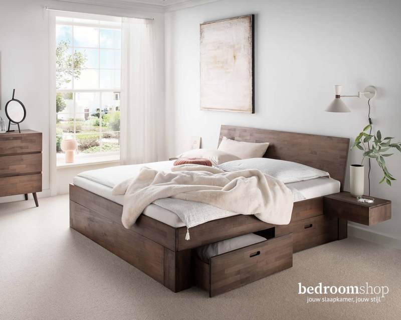 Bij Bedroomshop vind je tweepersoonsbedden in hout (massief hout of spaanplaat/MDF) of een combinatie van hout met metaal. Wij hebben speciaal voor jou veel variatie in ons aanbod, van robuuste landelijke bedden tot strakke moderne tweepersoonsbedden. Wat je smaak ook is, je vindt altijd wel een tweepersoonsbed die past bij jouw wensen.