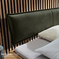 Het kussenhoofdbord is alleen mogelijk in combinatie met bedframe lengte van 220 cm. Het hoofdbord bestaat uit de stof Nikita, 100% gerecycled polyester.