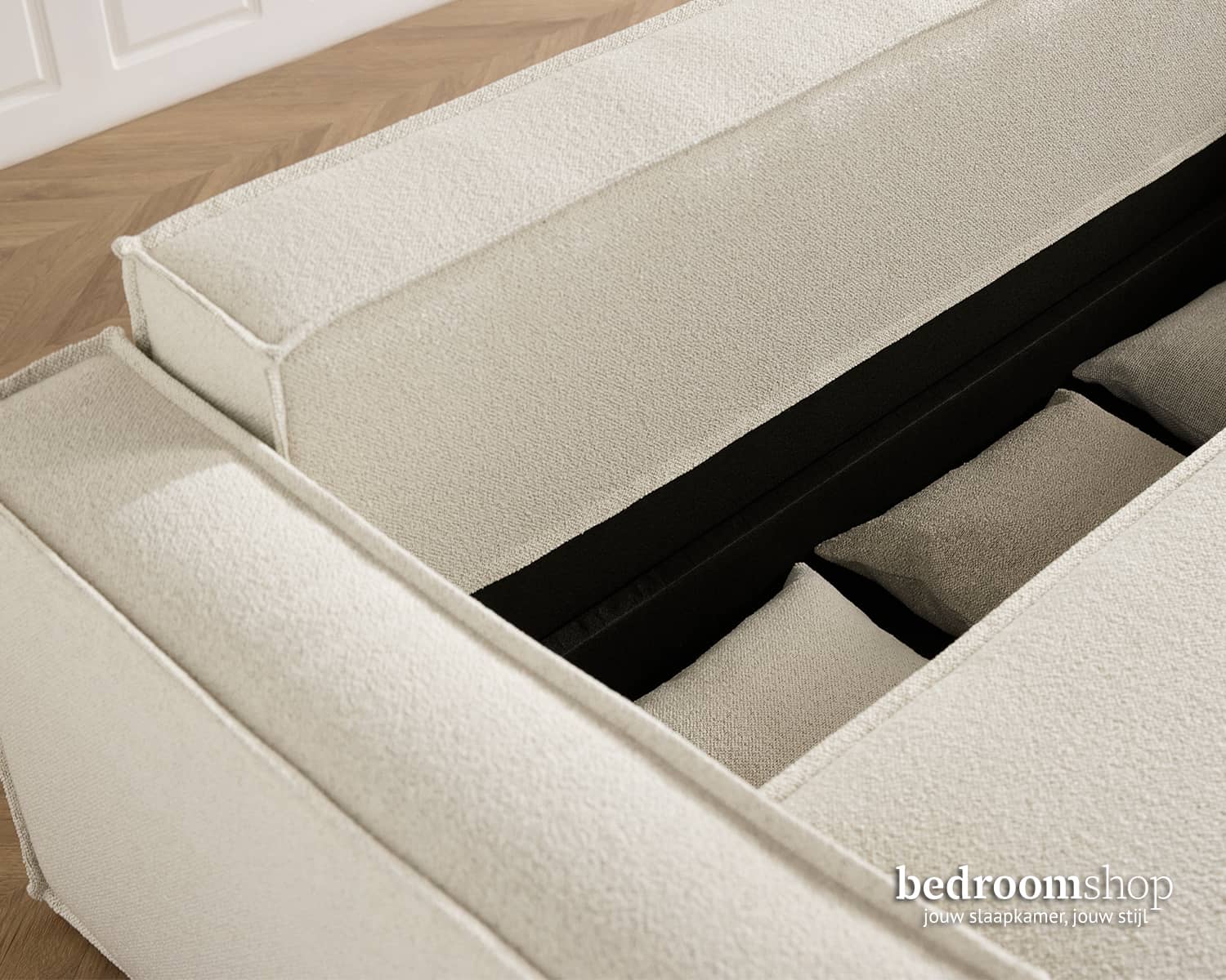 Slaapbank Houston is ontworpen om elke woonruimte optimaal te benutten. Onder de zitting bevindt zich een handige opbergruimte voor dekens, tijdschriften of andere spullen die je graag binnen handbereik houdt, ongeacht of je kiest voor de 200 cm zitvlak of 300 cm zitvlak. De afneembare hoezen zijn volledig wasbaar, zodat uw bank er altijd fris en verzorgd uitziet. Bovendien is de hoes eenvoudig te vervangen wanneer u na verloop van tijd een nieuwe look wilt creëren, duurzaam en toekomstgericht.