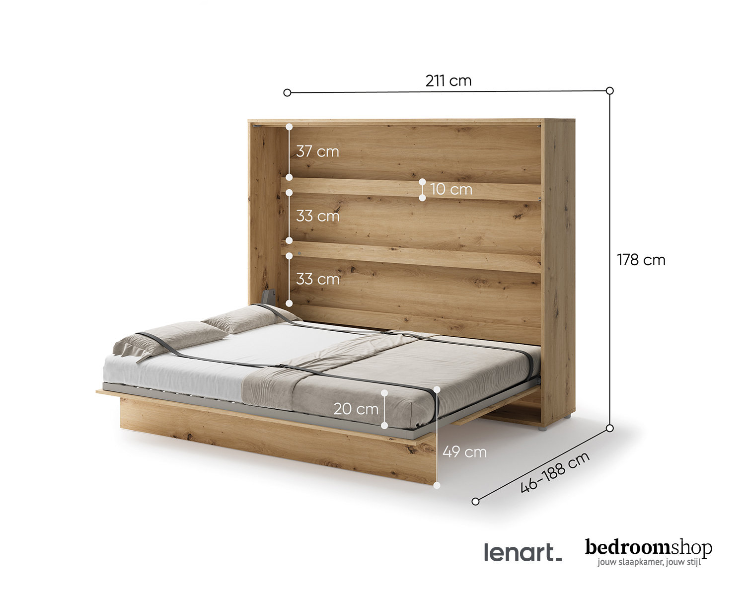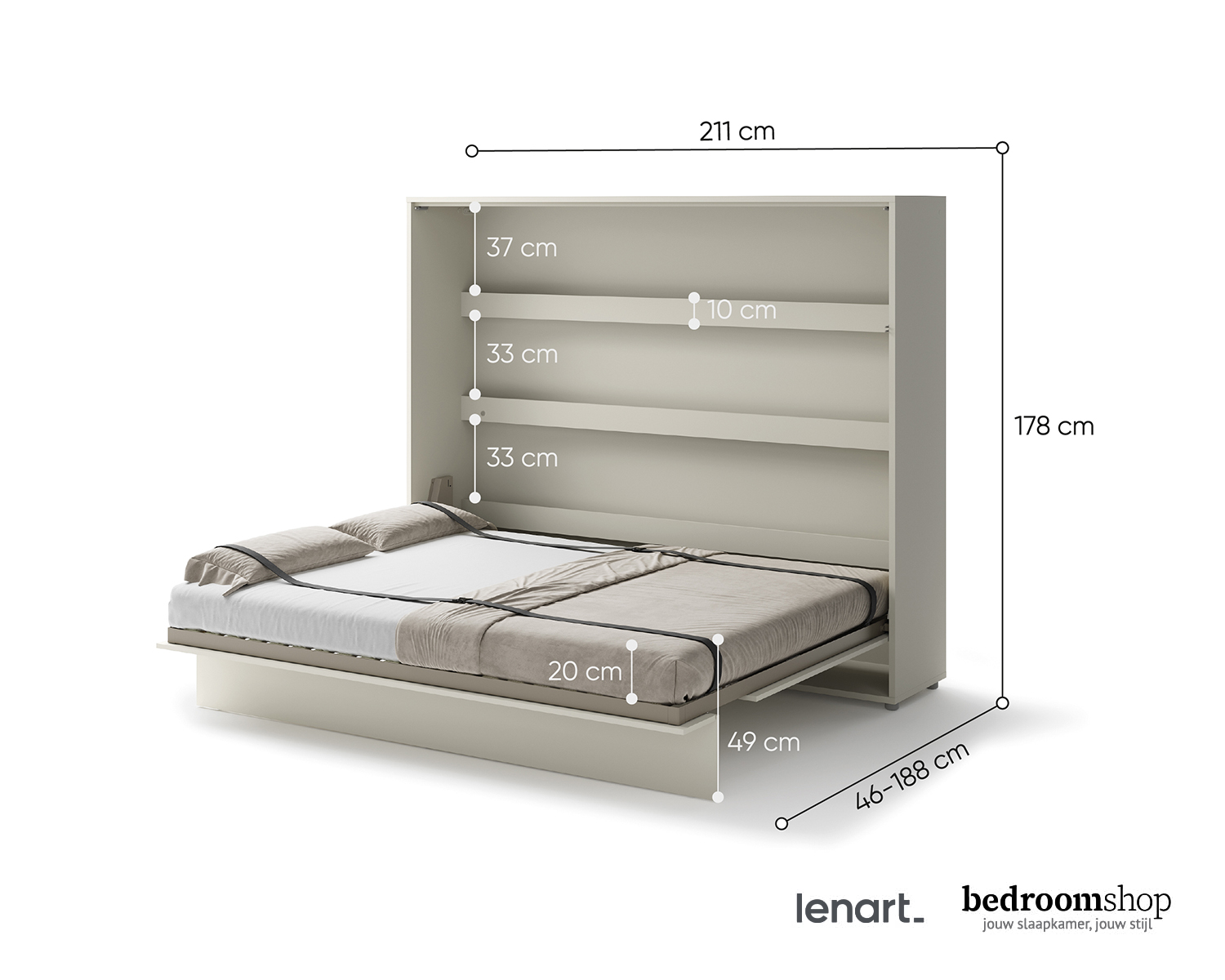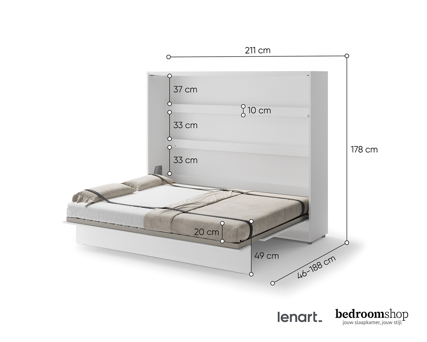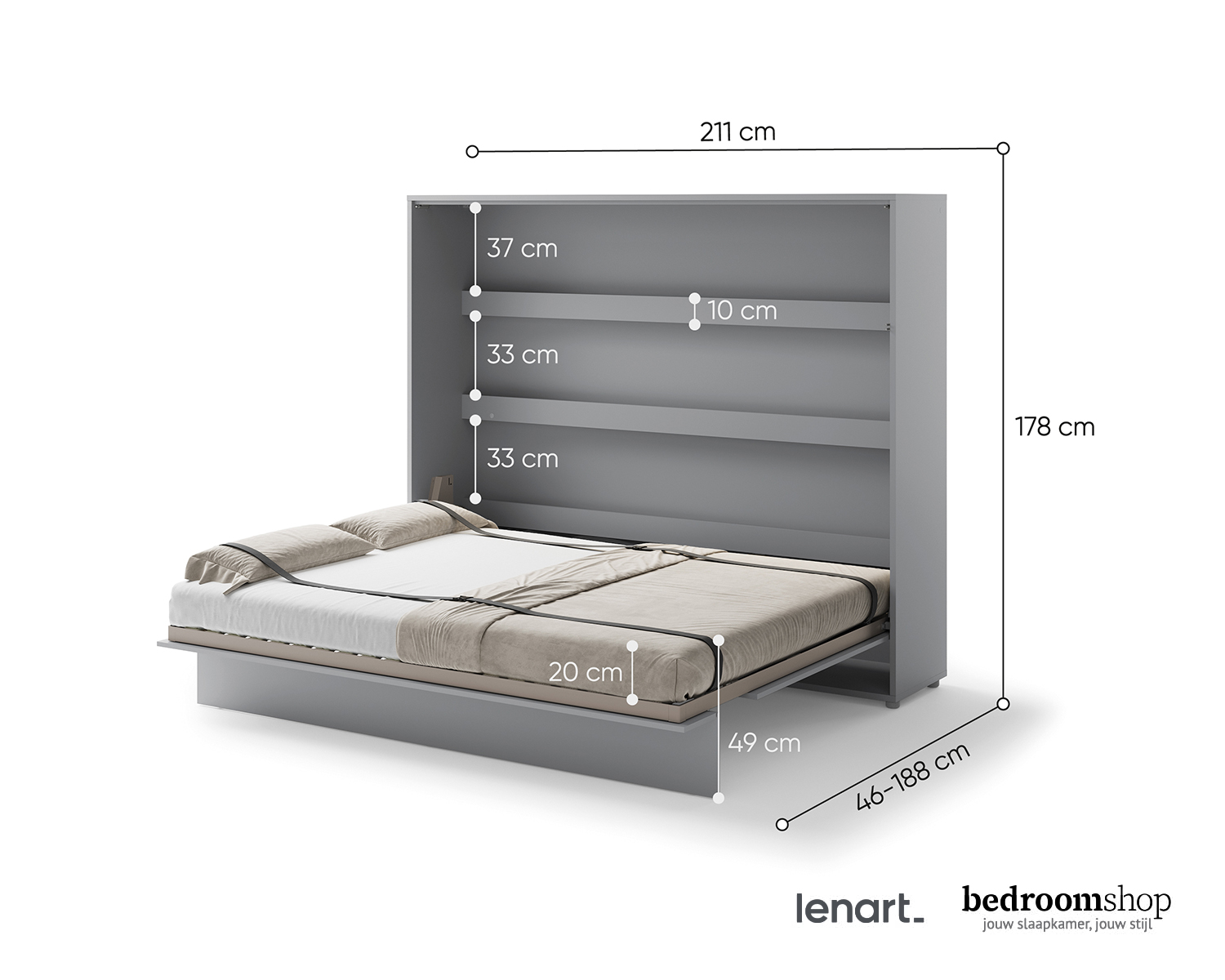 Bij elk artikel in onze webshop staat de levertijd. Dit verschilt van 2 tot 30 werkdagen. Zodra je jouw bestelling hebt geplaatst, wordt deze verwerkt. Je ontvangt een e-mail met jouw bestelling ter bevestiging. Zodra je bestelling bij ons binnen is, nemen we contact met je op om een bezorgafspraak te maken. Bedroomshop bezorgt op dinsdag tot en met zaterdag gratis bij je thuis in heel Nederland. Ben jij woonachtig in België? Dan kunnen we internationale verzending aanbieden voor een meerprijs van € 39,95. Neem contact op met onze klantenservice voor de mogelijkheden.