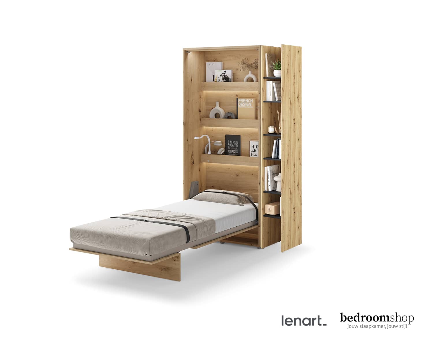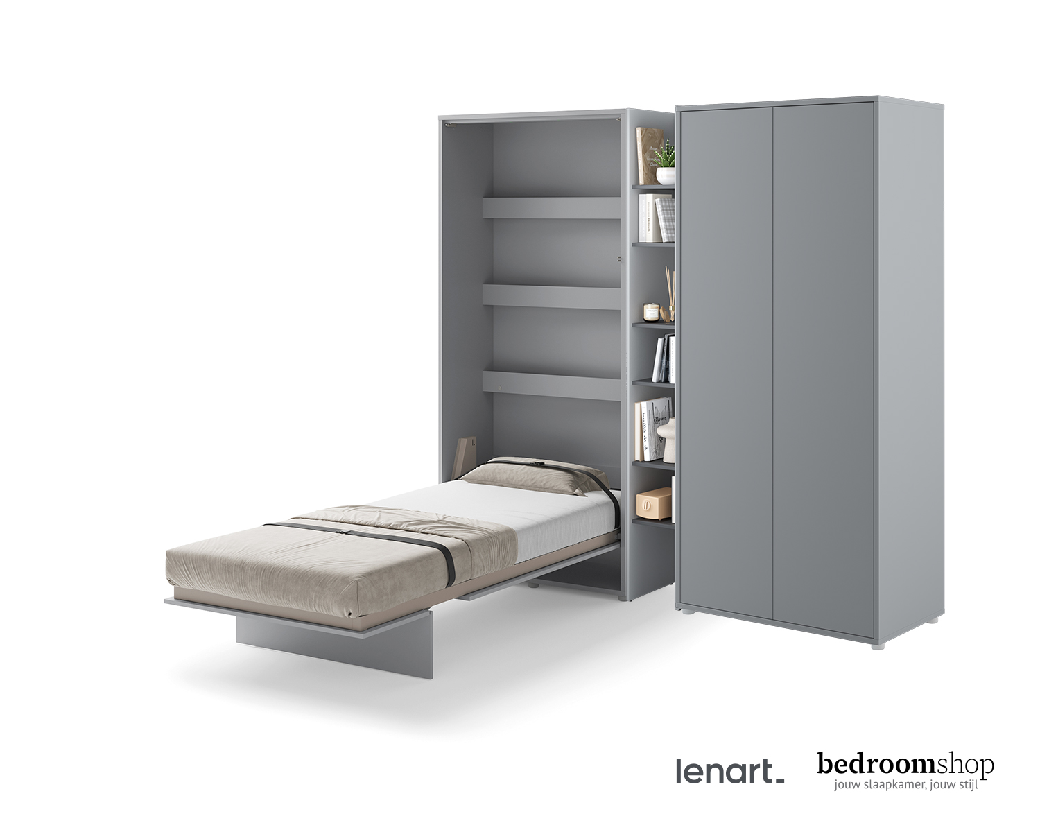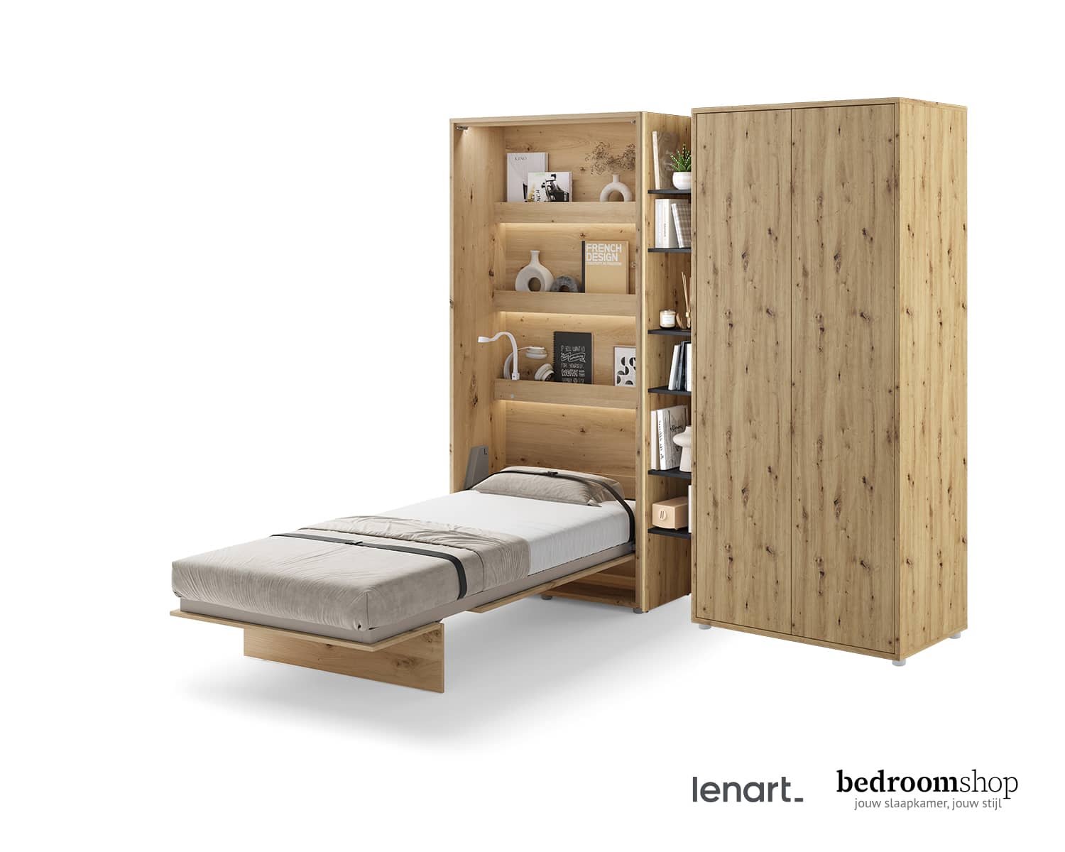 Opklapbed met smalle boekenkast en 1-deurs kast