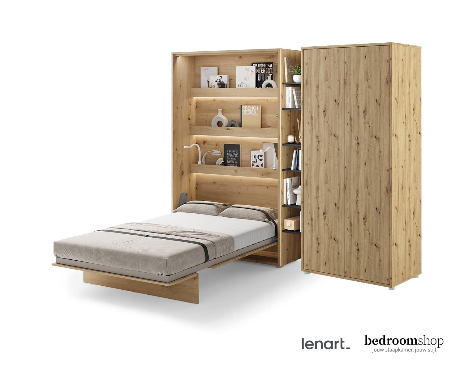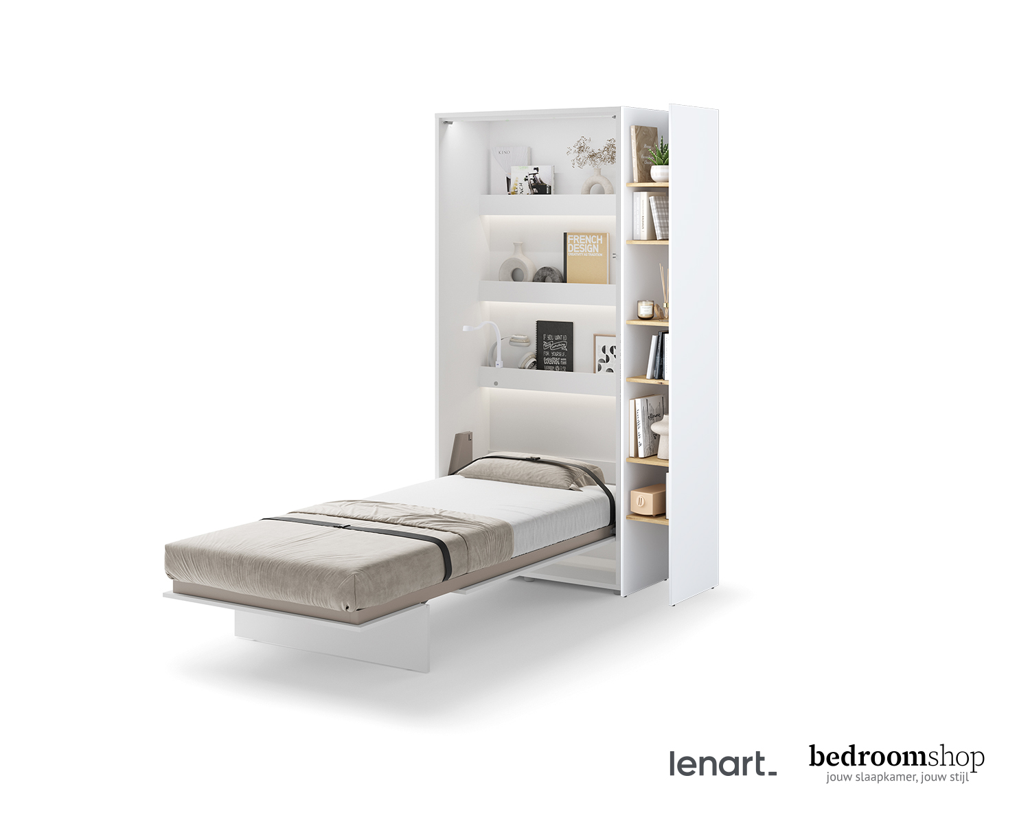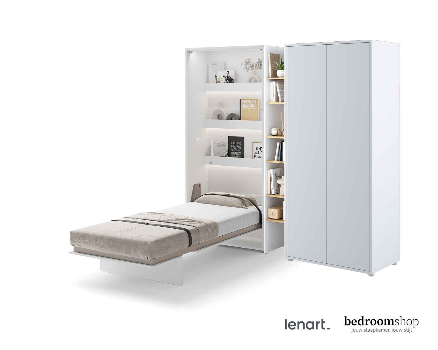 Opklapbed met smalle boekenkast en 1-deurs kast