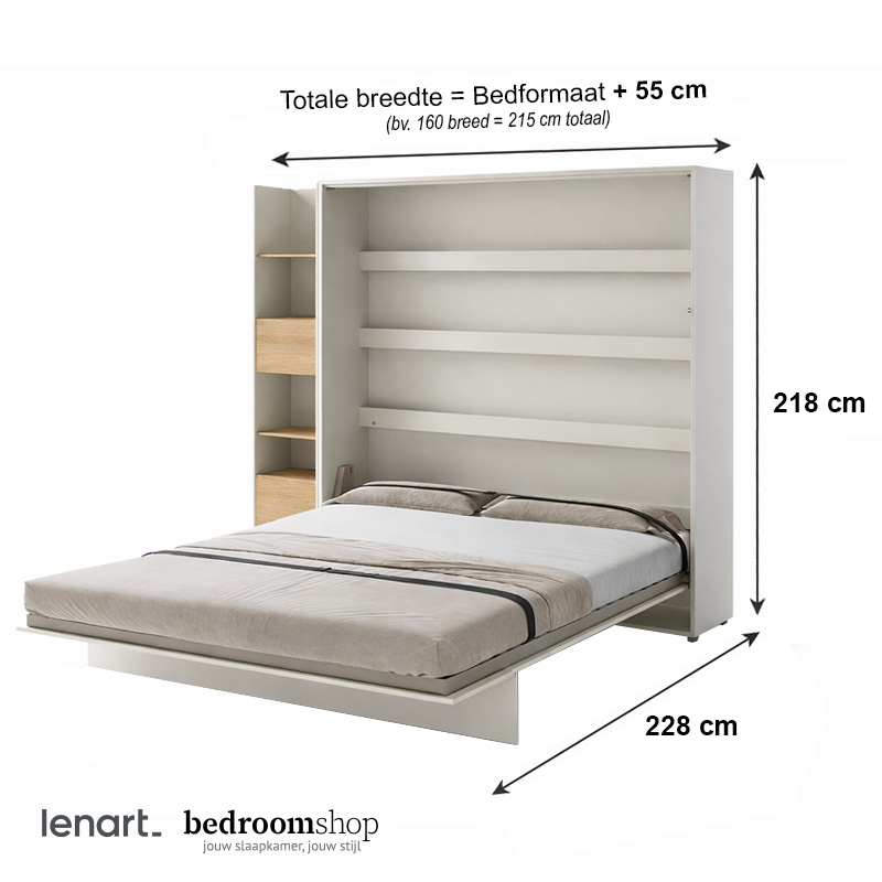 Totale breedte: breedtemaat bed + 55 cm