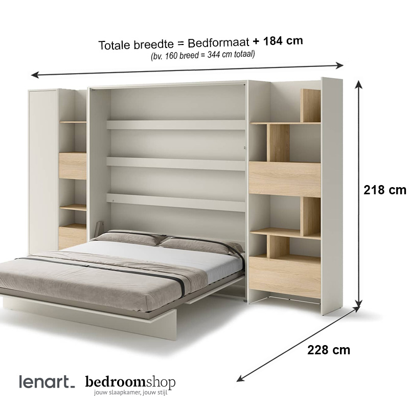 Totale breedte: breedtemaat bed + 184 cm