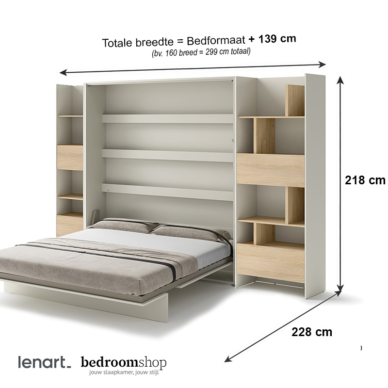 Totale breedte: breedtemaat bed + 139 cm