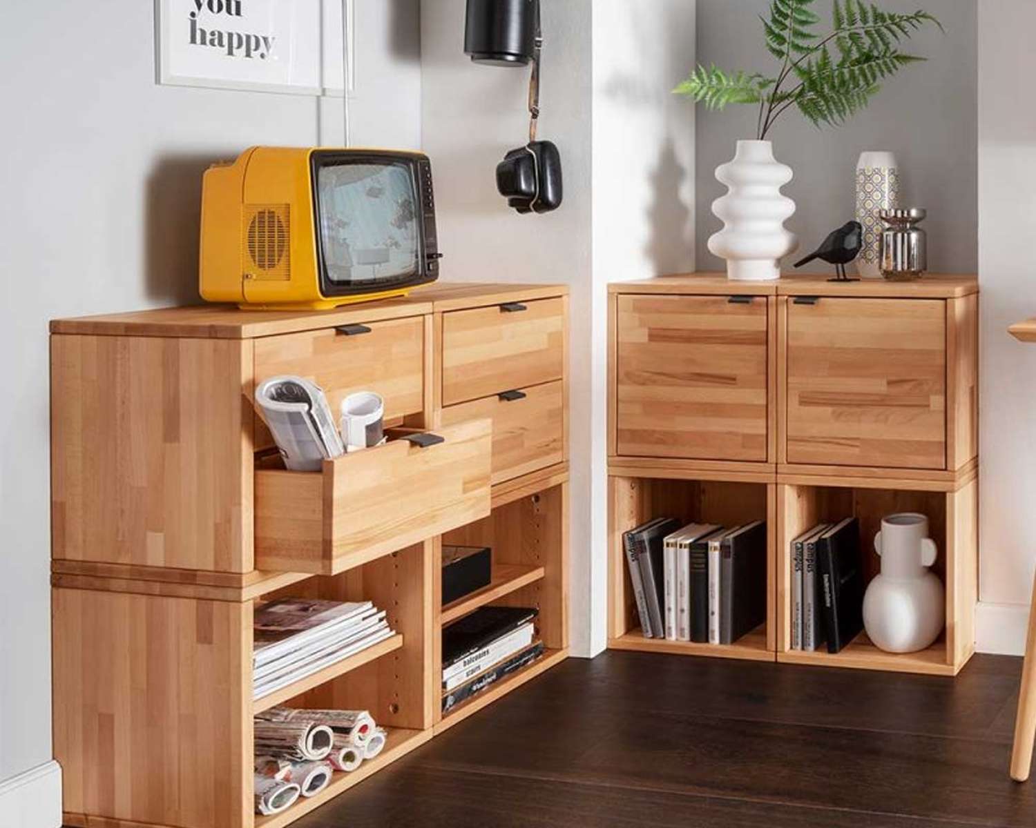 Een prachtige wandelement bestaande uit 8 kubussen (38 x 35 x 38 cm) voor aan de muur uit te breiden met diverse stijlelementen. De wandschap kubus is beschikbaar in kernbeuken of wildeiken.