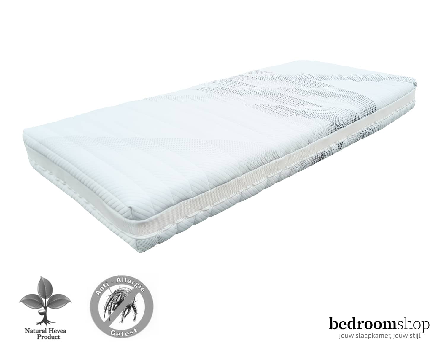 De kern bestaat voor maar liefst 60% uit natuurrubber. Dat voel je direct. De matras is ingeschaald als soft/medium, maar biedt een duidelijk veerkrachtiger en steviger liggevoel dan een soft/medium pocketvering- of koudschuimmatras. Je lichaam wordt actief ondersteund tijdens het liggen. Dat zorgt voor optimale drukverdeling en een stabiele nachtrust. Kom langs in onze toonzaal om het gevoel en ligcomfort te ervaren.