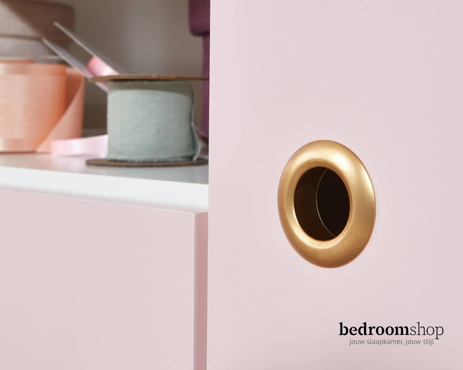 Een prachtige tweetonige kleur roze/wit inclusief handige opbergruimte. Liever het ledikant los bestellen? Dat is ook zeker mogelijk.
